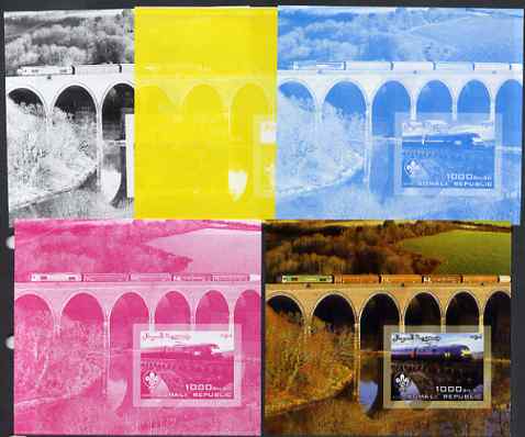 Somalia 2006 Modern Trains #2 souvenir sheet with Scout Logo, the set of 5 imperf progressive proofs comprising the 4 individual colours plus all 4-colour composite, unmounted mint