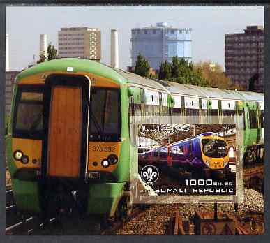 Somalia 2006 Modern Trains #4 imperf souvenir sheet with Scout Logo unmounted mint