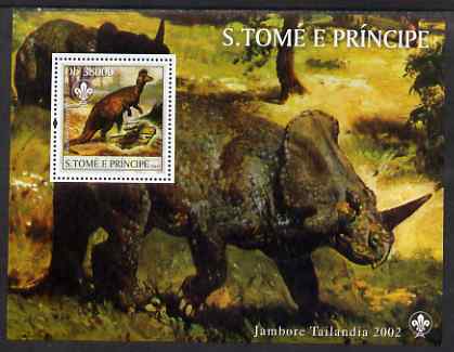 St Thomas & Prince Islands 2003 Dinosaurs (with Scouts emblem) perf souvenir sheet unmounted mint Mi Bl 1423