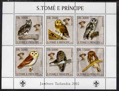 St Thomas & Prince Islands 2003 Owls (with Lord Baden Powell) perf sheetlet containing 6 values unmounted mint Mi 2019-24