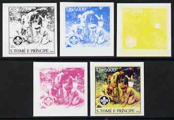 St Thomas & Prince Islands 2004 Scouts 5,000 Db the set of 5 imperf progressive proofs comprising the 4 individual colours plus all 4-colour composite, unmounted mint