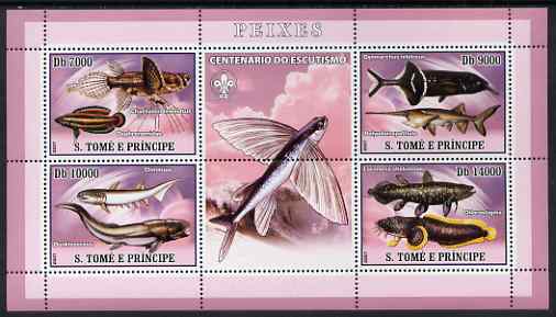 St Thomas & Prince Islands 2007 Fish perf sheetlet containing 4 values plus label (with Scout logo) unmounted mint