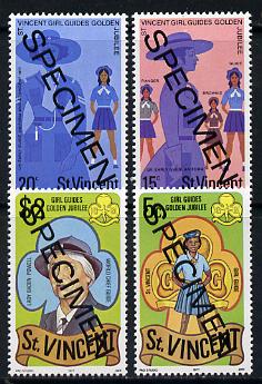 St Vincent 1977 Girl Guides set of 4 (the $2 with opt dates omitted) opt'd Specimen unmounted mint, as SG 536-39 (gutter pairs pro rata)