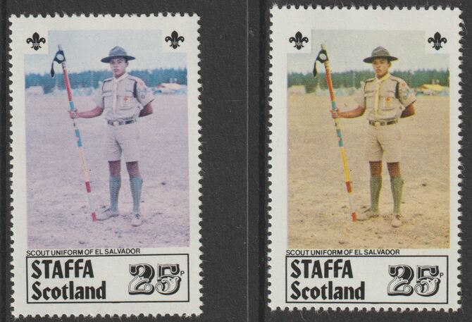 Staffa 1979 Scouts of the World - 25p El Salvador perf single showing a superb shade apparently due to a dry print of the yellow complete with normal both unmounted mint