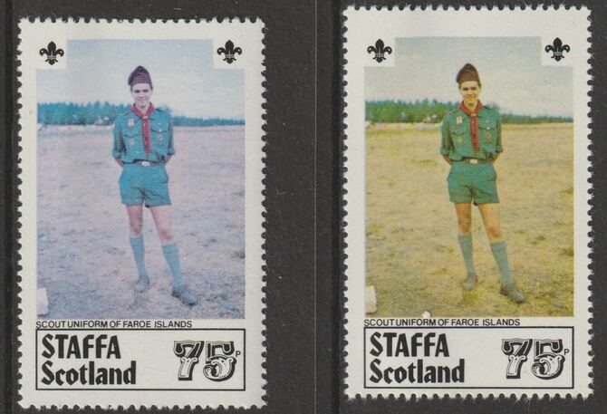 Staffa 1979 Scouts of the World - 75p Faroe Islands perf single showing a superb shade apparently due to a dry print of the yellow complete with normal both unmounted mint