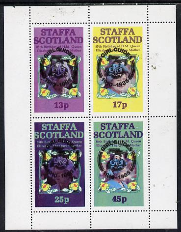 Staffa 1985 Life & Times of HM Queen Mother perf set of 4 with Girl Guide 75th Anniversary opt in black unmounted mint