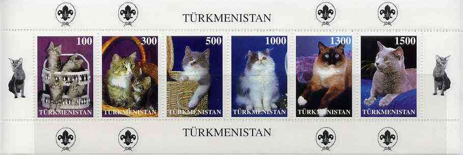 Turkmenistan 1997 Domestic Cats,sheetlet containing complete set of 6 values (with Scout Logo in margins)