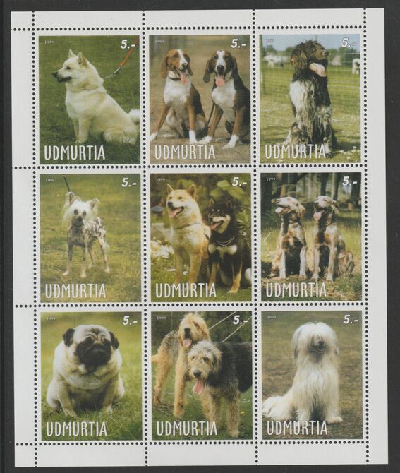 Udmurtia Republic 1999 Dogs (various) perf sheetlet containing complete set of 9 values, unmounted mint