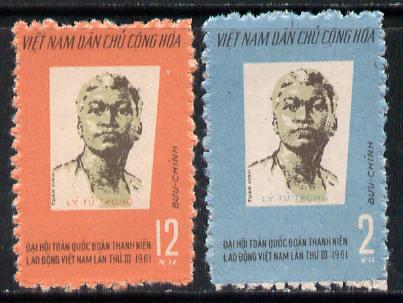Vietnam - North 1961 Third Congress for Labour Youth Union set of 2 unmounted mint, SG,N162-63