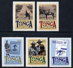 Tonga 1982 75th Anniversary of Scouting self-adhesive set of 5 opt'd SPECIMEN, as SG 803-07 unmounted mint (blocks or gutter pairs pro rata)