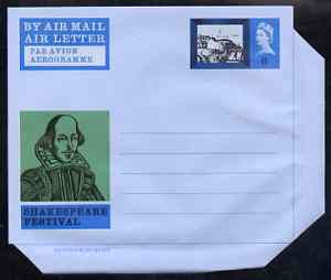 Great Britain 1964 Shakespeare airletter form #2 (portrait in green with scenes from various plays) unused