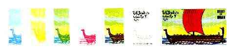 Oman 1977 Ships 2b (Norman Longship of 1066) set of 7 imperf progressive colour proofs comprising the 4 individual colours plus 2, 3 and all 4-colour composites unmounted mint