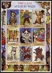 Congo 2002 The Cats of Louis Wain perf sheetlet containing 9 values fine cto used