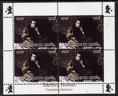 Congo 2013 Sherlock Holmes #1a perf sheetlet containing 4 vals (top left design from sheet #1) unmounted mint. Note this item is privately produced and is offered purely on its thematic appeal