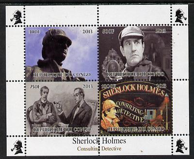 Congo 2013 Sherlock Holmes #2 perf sheetlet containing 4 vals unmounted mint. Note this item is privately produced and is offered purely on its thematic appeal