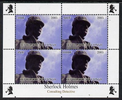 Congo 2013 Sherlock Holmes #2a perf sheetlet containing 4 vals (top left design from sheet #2) unmounted mint. Note this item is privately produced and is offered purely on its thematic appeal