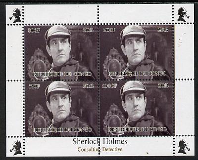 Congo 2013 Sherlock Holmes #2b perf sheetlet containing 4 vals (top right design from sheet #2) unmounted mint. Note this item is privately produced and is offered purely on its thematic appeal