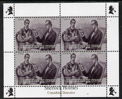 Congo 2013 Sherlock Holmes #2c perf sheetlet containing 4 vals (lower left design from sheet #2) unmounted mint. Note this item is privately produced and is offered purely on its thematic appeal