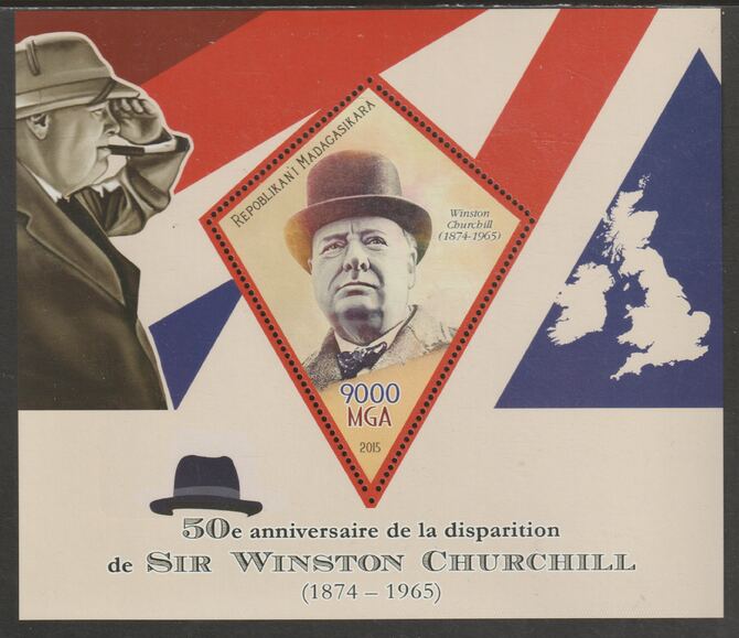 Madagascar 2015 Winston Churchill 50th Death Anniversary perf deluxe sheet containing one diamond shaped value unmounted mint