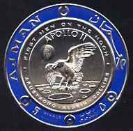 Ajman 1969 First Man on the Moon (4) Coin shaped 5r in silver foil showing Apollo 11, Armstrong, Aldrin & Collins unmounted mint, Mi 473