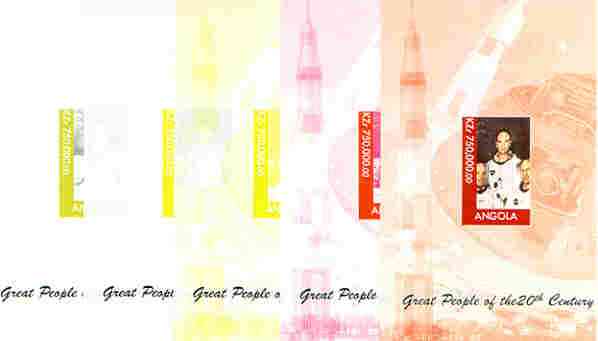 Angola 1999 Great People of the 20th Century - Apollo Astronauts souvenir sheet, the set of 5 imperf progressive proofs comprising various colour combinations plus all 4-colour composite unmounted mint