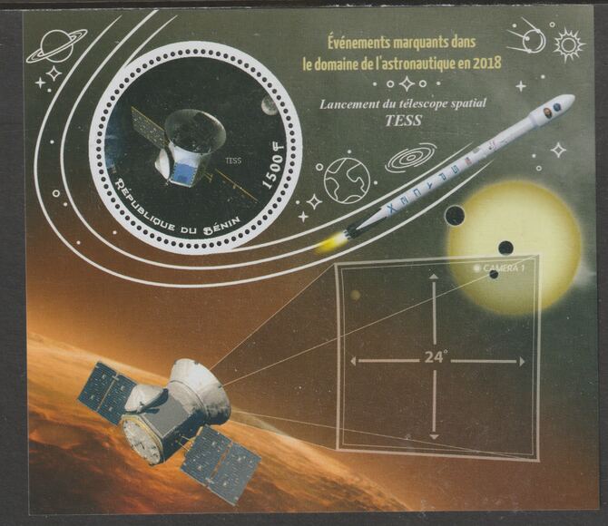 Benin 2018 Important Space Events - Tess Mission perf deluxe m/sheet containing one circular value unmounted mint