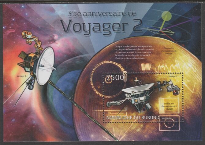 Burundi 2012 Voyager 2 perf souvenir sheet,containing 1 value unmounted mint.