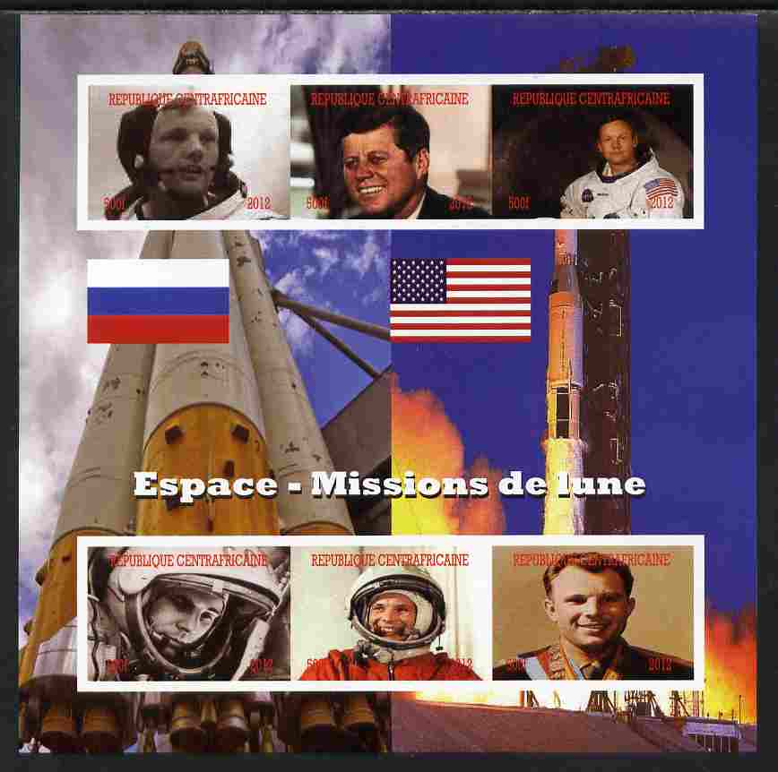 Central African Republic 2012 Mission to the Moon imperf sheetlet containing 6 values unmounted mint. Note this item is privately produced and is offered purely on its thematic appeal, it has no postal validity