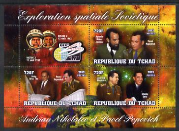 Chad 2013 Soviet Space Exploration - Andriyan Nikolayev & Pavel Popovich #1 perf sheetlet containing three values plus label unmounted mint