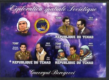 Chad 2013 Soviet Space Exploration - Georgy Beregovoy #1 imperf sheetlet containing three values plus label unmounted mint