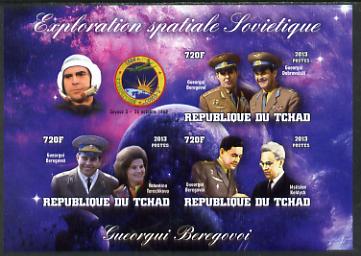 Chad 2013 Soviet Space Exploration - Georgy Beregovoy #2 imperf sheetlet containing three values plus label unmounted mint