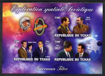 Chad 2013 Soviet Space Exploration - Gherman Titov #2 imperf sheetlet containing three values plus label unmounted mint