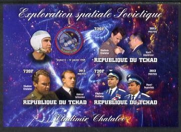 Chad 2013 Soviet Space Exploration - Vladimir Chatalov #1 imperf sheetlet containing three values plus label unmounted mint