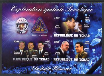Chad 2013 Soviet Space Exploration - Vladimir Komarov #1 imperf sheetlet containing three values plus label unmounted mint