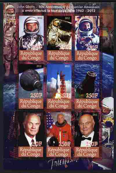 Congo 2012 Space - John Glenn perf sheetlet containing 9 values unmounted mint