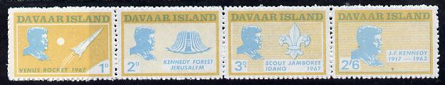 Davaar Island 1967 J F Kennedy perf def strip of 4 (Scouts & Space) unmounted mint
