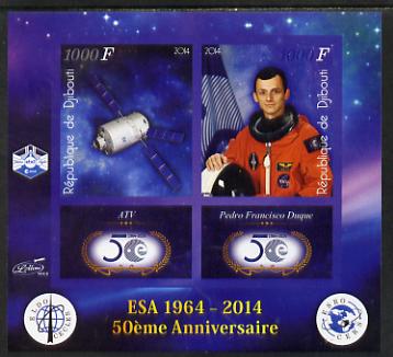 Djibouti 2014 50th Anniversary of European Space Agency - ATV & Pedro Francisco Duque imperf sheetlet containing 2 values plus 2 label unmounted mint