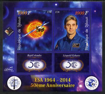 Djibouti 2014 50th Anniversary of European Space Agency - BepiColombo & Leopold Eyharts perf sheetlet containing 2 values plus 2 label unmounted mint