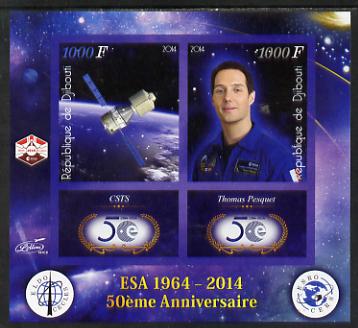 Djibouti 2014 50th Anniversary of European Space Agency - CSTS & Thomas Pesquet imperf sheetlet containing 2 values plus 2 label unmounted mint