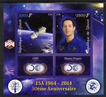 Djibouti 2014 50th Anniversary of European Space Agency - CSTS & Thomas Pesquet perf sheetlet containing 2 values plus 2 label unmounted mint