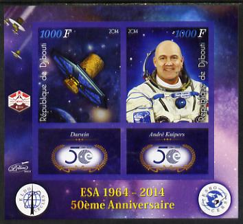 Djibouti 2014 50th Anniversary of European Space Agency - Darwin & Andre Kuipers imperf sheetlet containing 2 values plus 2 label unmounted mint