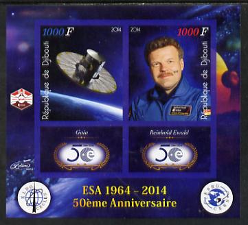 Djibouti 2014 50th Anniversary of European Space Agency - Gaia & Reinhold Ewald imperf sheetlet containing 2 values plus 2 label unmounted mint