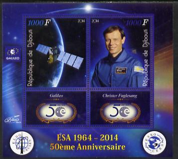 Djibouti 2014 50th Anniversary of European Space Agency - Galileo & Christer Fuglesang perf sheetlet containing 2 values plus 2 label unmounted mint