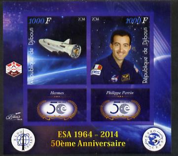 Djibouti 2014 50th Anniversary of European Space Agency - Hermes & Philippe Perrin imperf sheetlet containing 2 values plus 2 label unmounted mint