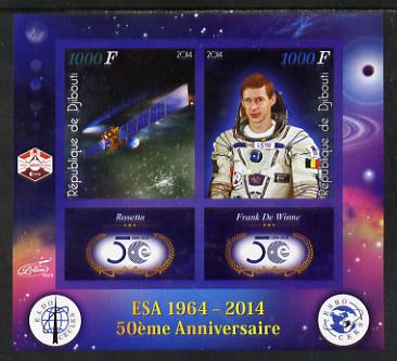 Djibouti 2014 50th Anniversary of European Space Agency - Rosetta & Frank de Winne imperf sheetlet containing 2 values plus 2 label unmounted mint