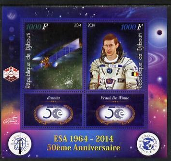 Djibouti 2014 50th Anniversary of European Space Agency - Rosetta & Frank de Winne perf sheetlet containing 2 values plus 2 label unmounted mint