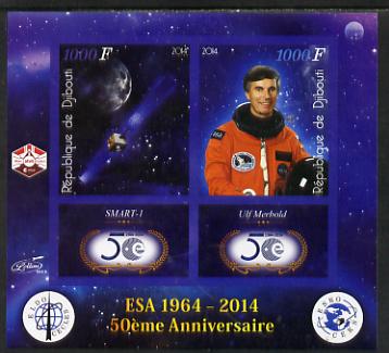 Djibouti 2014 50th Anniversary of European Space Agency - SMART-1 & Ulf Merbold imperf sheetlet containing 2 values plus 2 label unmounted mint