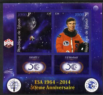 Djibouti 2014 50th Anniversary of European Space Agency - SMART-1 & Ulf Merbold perf sheetlet containing 2 values plus 2 label unmounted mint