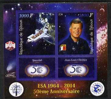 Djibouti 2014 50th Anniversary of European Space Agency - Spacelab & Jean-Louis Chretien perf sheetlet containing 2 values plus 2 label unmounted mint