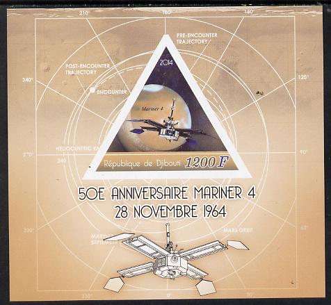 Djibouti 2014 50th Anniversary of Launch of Mariner 4 imperf sheetlet containing triangular value unmounted mint